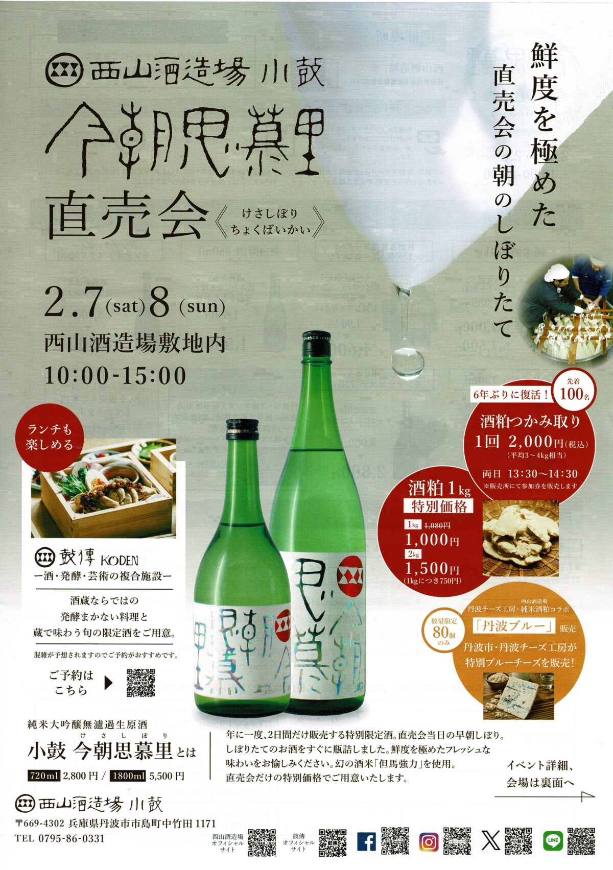2026年最初の蔵開き直売会「今朝思慕里直売会」が開催されます。