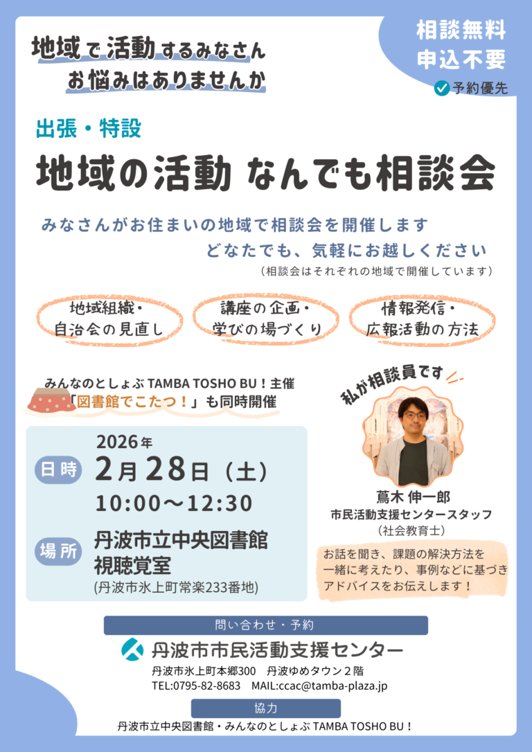 2月28日(土):出張・特設 地域の活動なんでも相談会