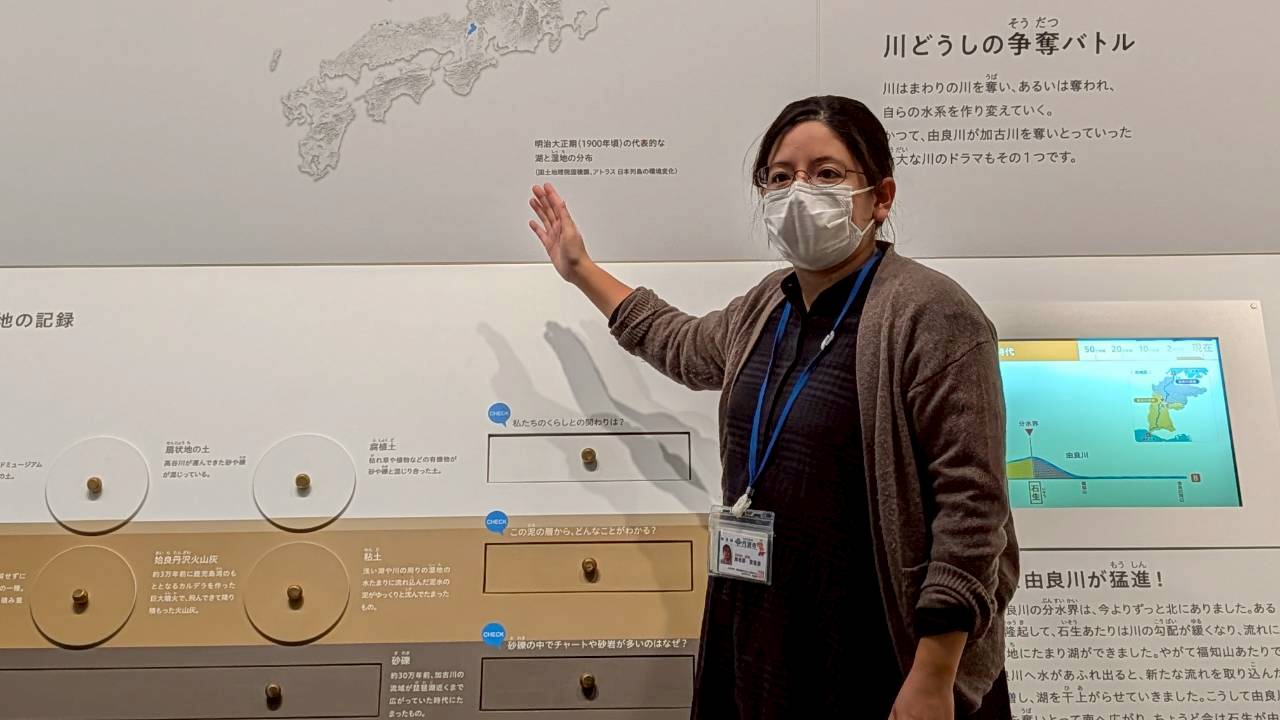 挨拶もほどほどに、まずは水分かれフィールドミュージアムの館内案内を、教育普及専門員である海老原茉里奈さんにお願いしました。