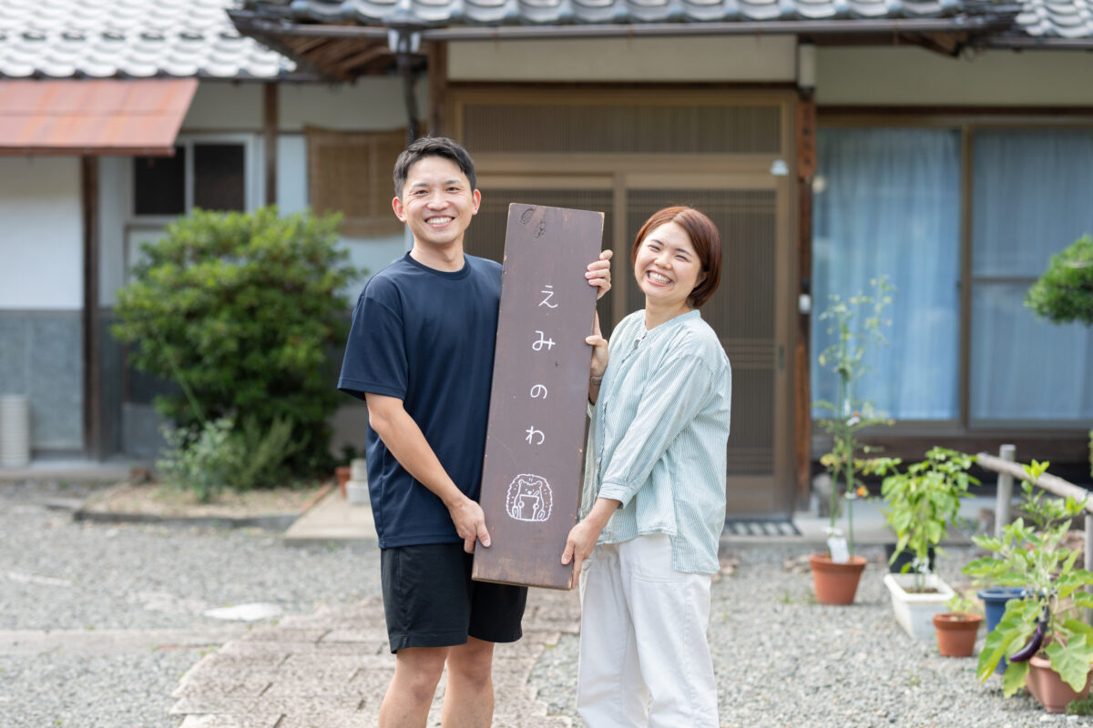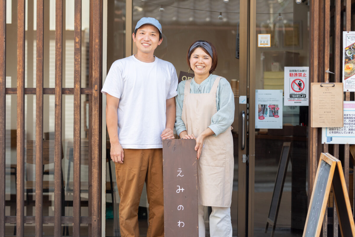“えみのわ”の屋号は、最初「ひらがな」「4文字」「親しみやすい」ものがいいなと思って、散々考えましたが、最終的には彼女が料理してる姿を思い浮かべて、お客さん同士が話して、笑顔が繋がる、次に繋がる、そういう輪が広がっていけばいいなと思って決めました。これからもっと自分たちの事業や暮らしの事を発信できる場所に、笑顔が広がる場所を作っていけたらいいなと思っています。最終的には、全部が繋がっていけばいいなと思いますね。