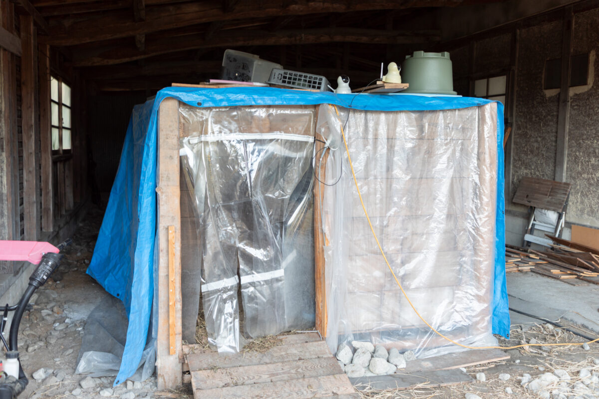 そうですね、この時期は小屋にヒーターをつけてますので、日中は外で日向ぼっこして、夕方になれば勝手に小屋に帰ってきますし、のびのび暮らしてますよ。日差しが強い日の為に日除けを作ったんですが、まだ全然入った形跡がないですけど(笑)