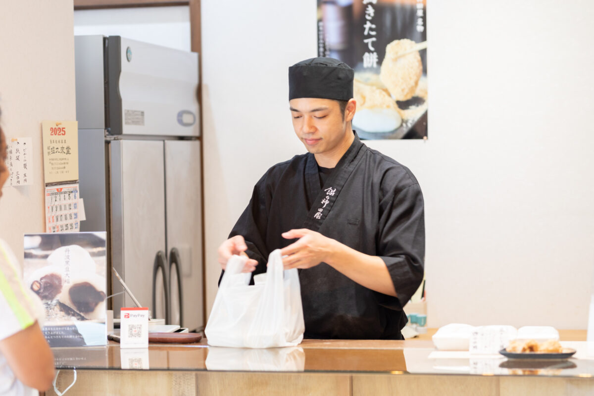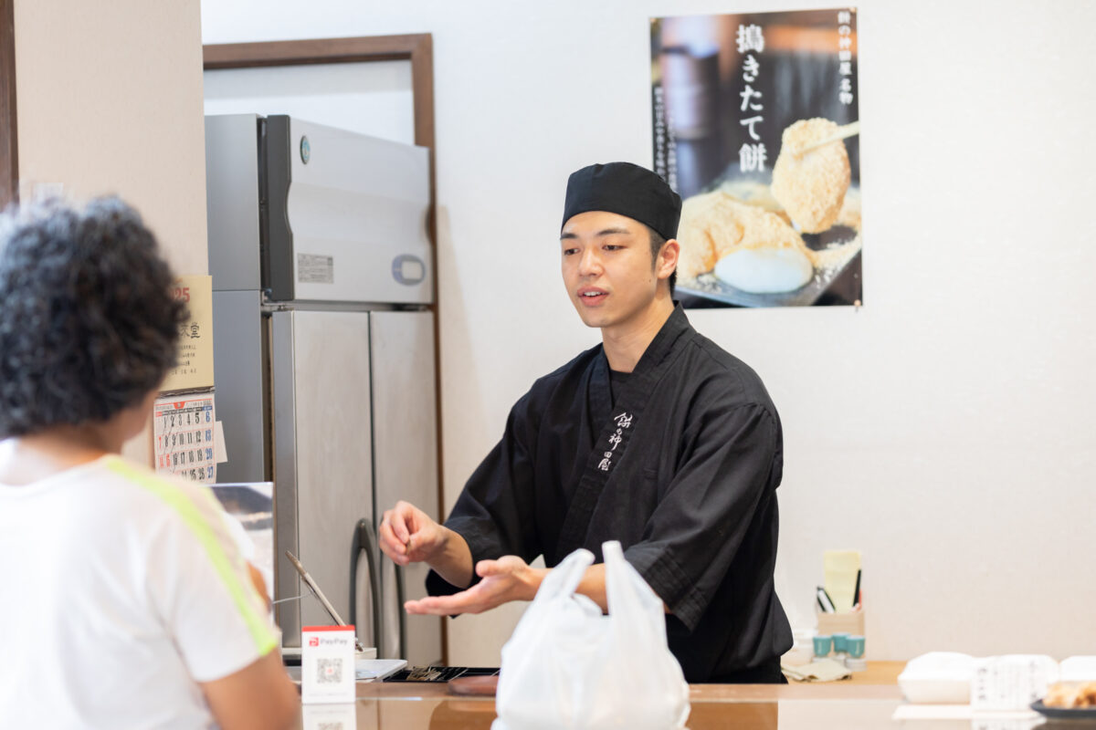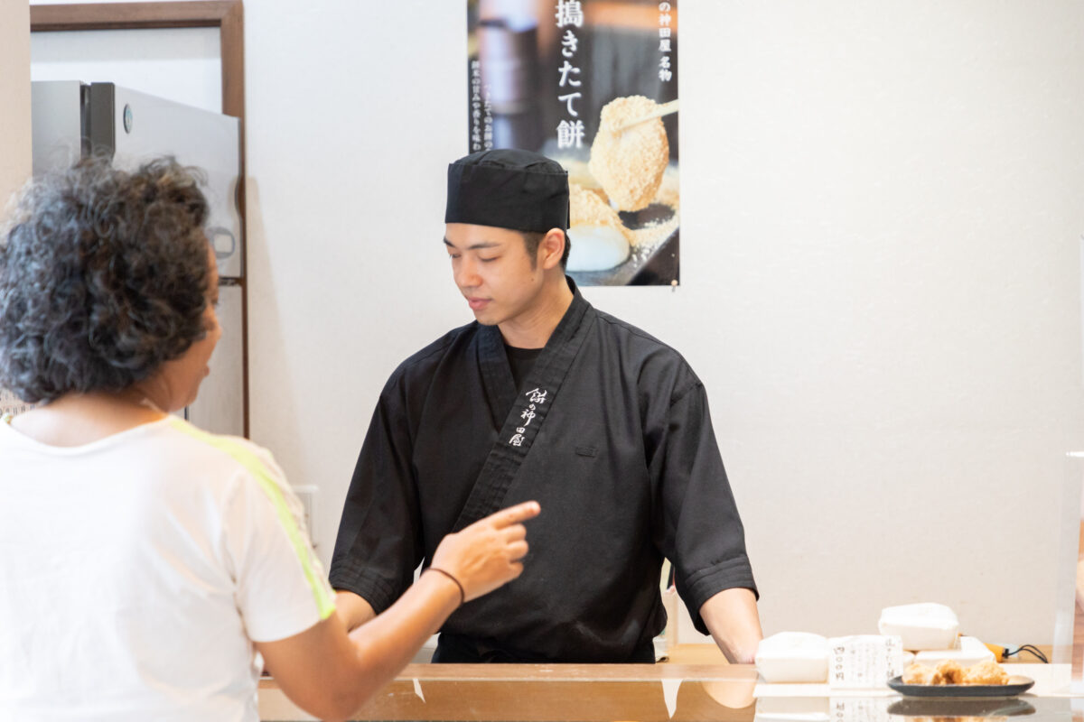 普通に「お餅屋さんである」というのが一目で分かるようにしたかったのと、神田は僕の旧姓なんですね。妻は3姉妹の真ん中でして、婿入りする形で僕は米崎になったので、「店名に残してもええんちゃう?“田の字”も入ってるし」という話で決まりましたね。
